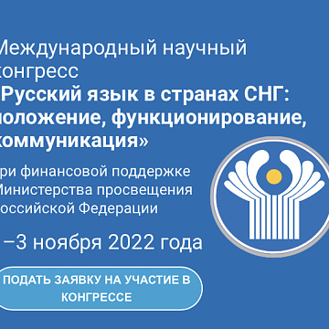 Открыта регистрация на Международный научный конгресс «Русский язык в странах СНГ: положение, функционирование, коммуникация» 21 сентября 2022 Объявление